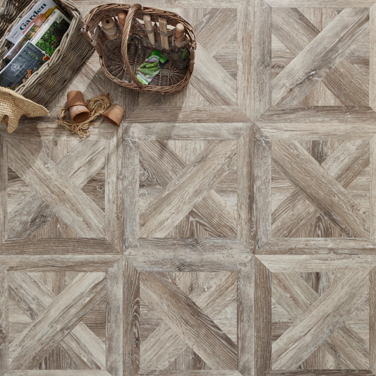 Lattia Metsä Ice Oak Basket Weave Glue Down LVT Flooring