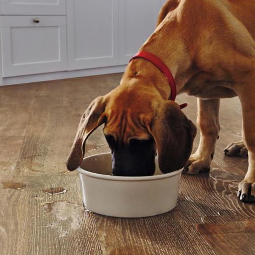 Yes. The 0.55mm wear layer is scratch resistant, and the waterproof surface is easy to clean after spills or accidents. The secure gluedown installation means edges will not lift. The oak texture also provides grip underfoot.
