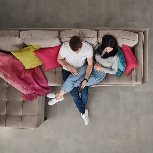 Sweep or vacuum (without a beater bar) daily to remove dust and debris. Mop weekly using a pH-neutral vinyl floor cleaner. Avoid harsh chemicals, steam mops, abrasive pads, and excessive water. Fit protective pads to furniture and use entrance mats to reduce wear. The 0.55mm wear layer helps maintain the limestone finish.