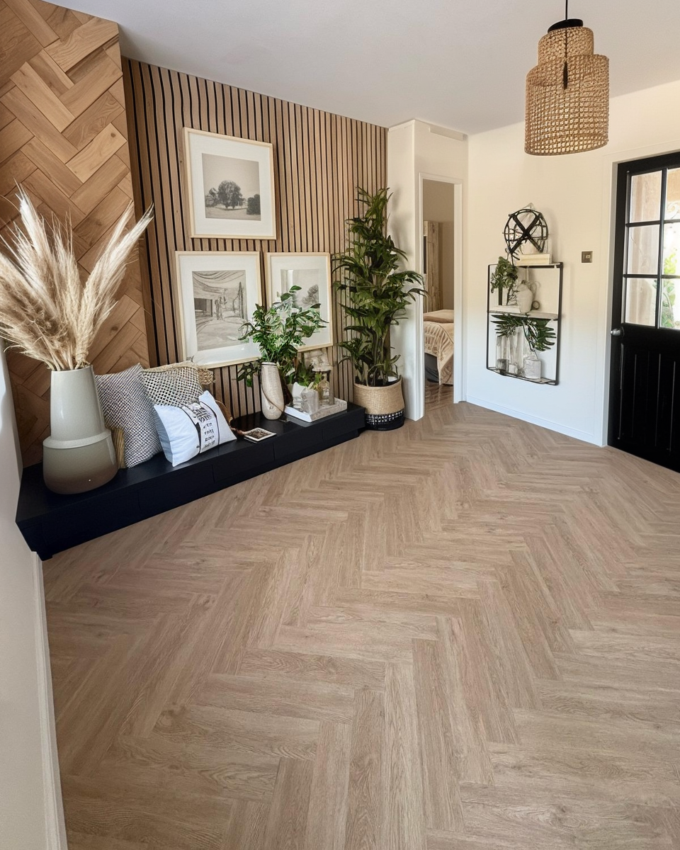 Glue-down LVT like Lattia Piana Nude Oak Large Parquet Glue Down LVT Flooring is bonded permanently to the subfloor, providing superior stability in larger rooms and heavy-use areas. It allows more complex layouts and performs better in heat or moisture-prone environments. Click LVT is quicker to fit but less robust for commercial or high-traffic use.