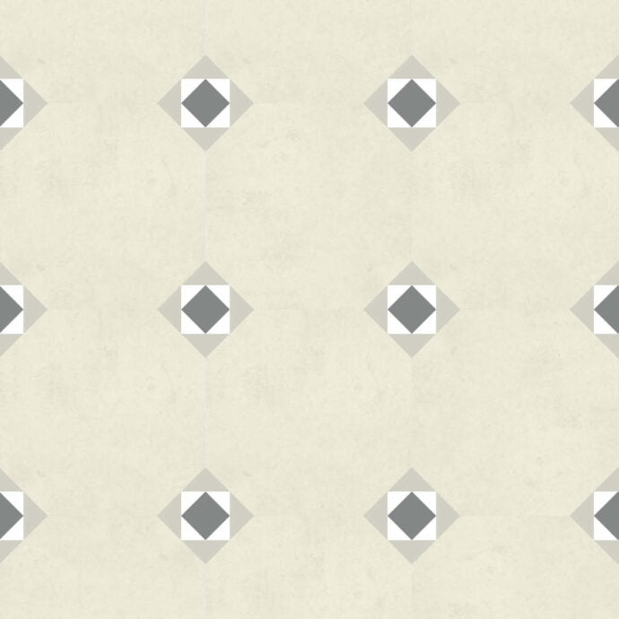 Lattia Talo Tähti - Cream, Grey, Pale Green, White reimagines a classic key square motif with elevated detail and subtle colour blending, bringing a fresh perspective to traditional pattern floorin...